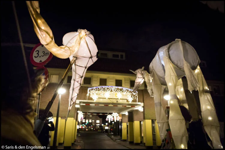 The festival featured over 50 performances and concerts over the course of three days, including a show in a Polish supermarket, a performance with dogs and dog owners from the neighborhood, and concerts in people’s living rooms. In addition, the festival had four festival hearts on different squares with christmas markets and outdoor performances. The festival opened and closed with a parade of light puppets through the streets of Amsterdam North.